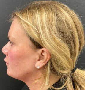 Dermal Filler – Cheek, Chin, Jaw Case ID: 7410 Individual results may vary. Case Details This patient had 2 syringes of Voluma in her cheeks to help lift the midface, 1 syringe of Voluma in her chin to help bring balance to her face, and 3 syringes of Radiesse in her jawline to help bring back structure. View Angle: left-side Before After